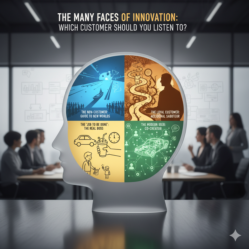 The customer is not a single entity. In the world of innovation, they wear many faces: the non-customer pointing you to new markets, the loyal customer who can accidentally keep you stuck, the “job” that reveals what people really want, and the modern user who helps you build the future.